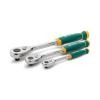 - 3 piece set includes a 1/4", 3/8", and 1/2" ratchet